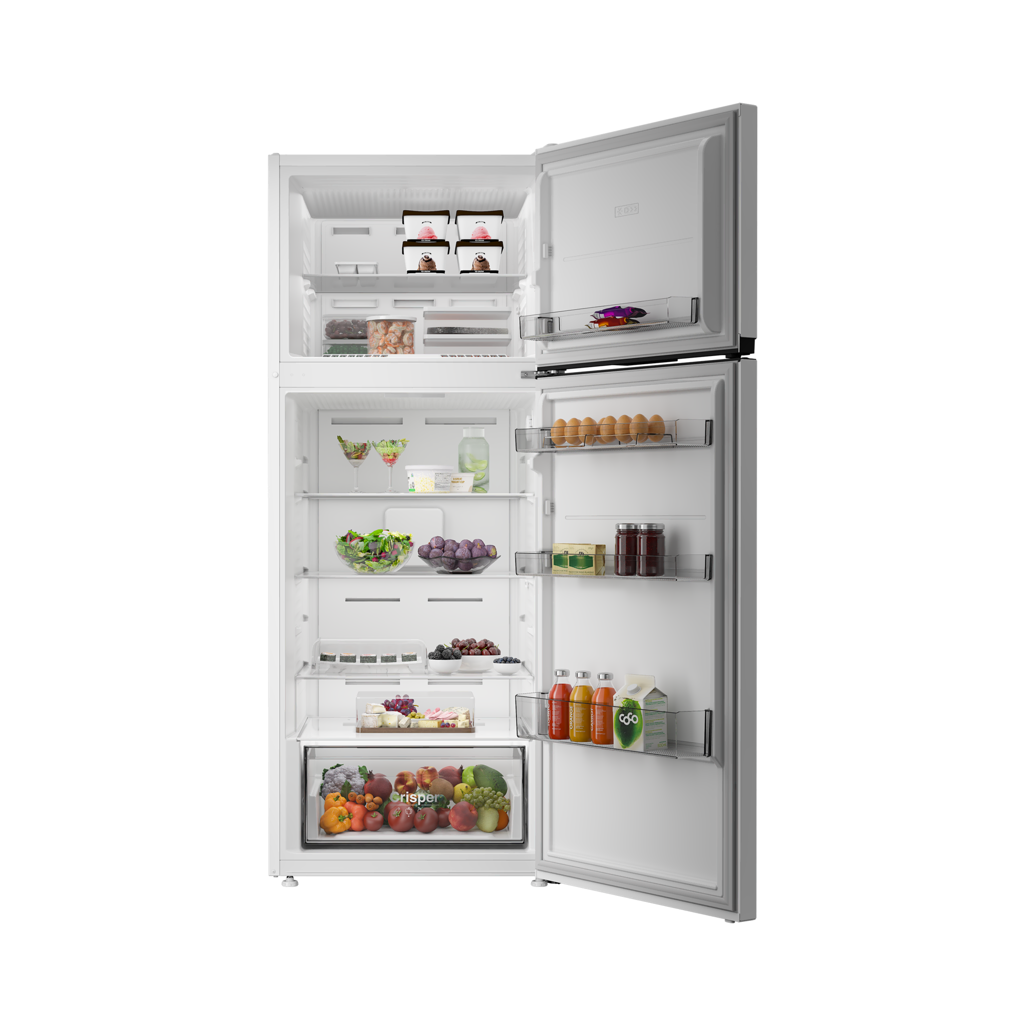 570471 MB modeli, dondurucusu üstte konumlandırılmış No Frost buzdolabı yapısıyla